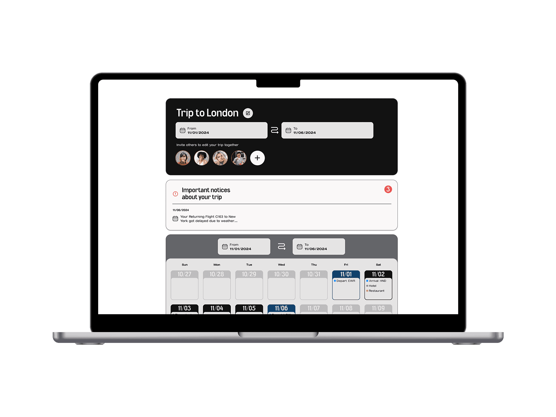 Users can create a travel itinerary and invite friends to work on the trip together. All invited users will have access to the itinerary dashboard, where they can collaborate and book things for their trip.